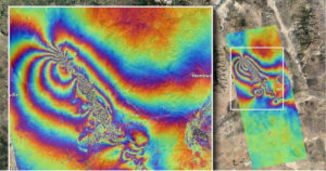 En ese sentido, cada color en la imagen representa 4.8 pulgadas (12 centímetros) de desplazamiento del terreno. Además, las partes lineales que cortan las franjas de color evidencian las zonas donde se presentó probables de ruptura de la superficie causada por los terremotos.