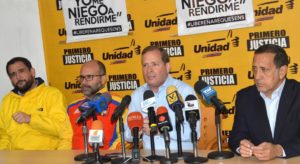 “PJ ni directa, ni indirectamente participa en la farsa del día 9 de diciembre”, dijo en rueda de prensa el dirigente Juan Pablo Guanipa, que también reiteró que este partido no participará en elecciones a menos que se den las condiciones para que se produzca un cambio de Gobierno.